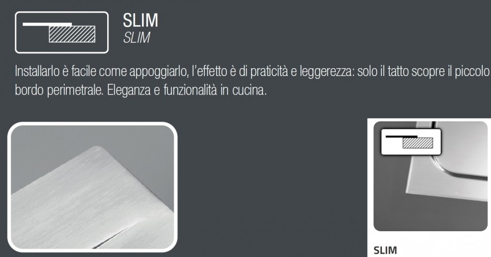 Lavello da Incasso 1 Vasca a Sinistra con Gocciolatoio 86 x 50 cm Slim Acciaio Inox Satinato con Fascia Miscelatore GLAMOUR MIX CM 012843.S2.01.2033 012843SCSSP